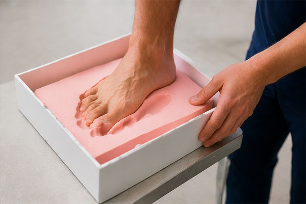 泡沫足模取样(或更高级一点用3D扫描),获取个性化足部数据, 作为加工厂的定制依据