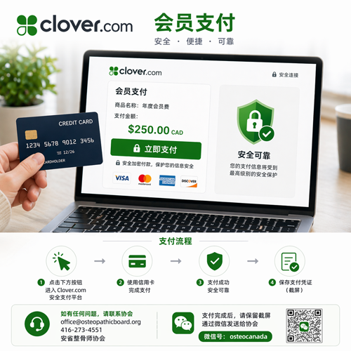 支付完成后,请截图并通过微信发送至协会备案,微信号:osteocanada。
